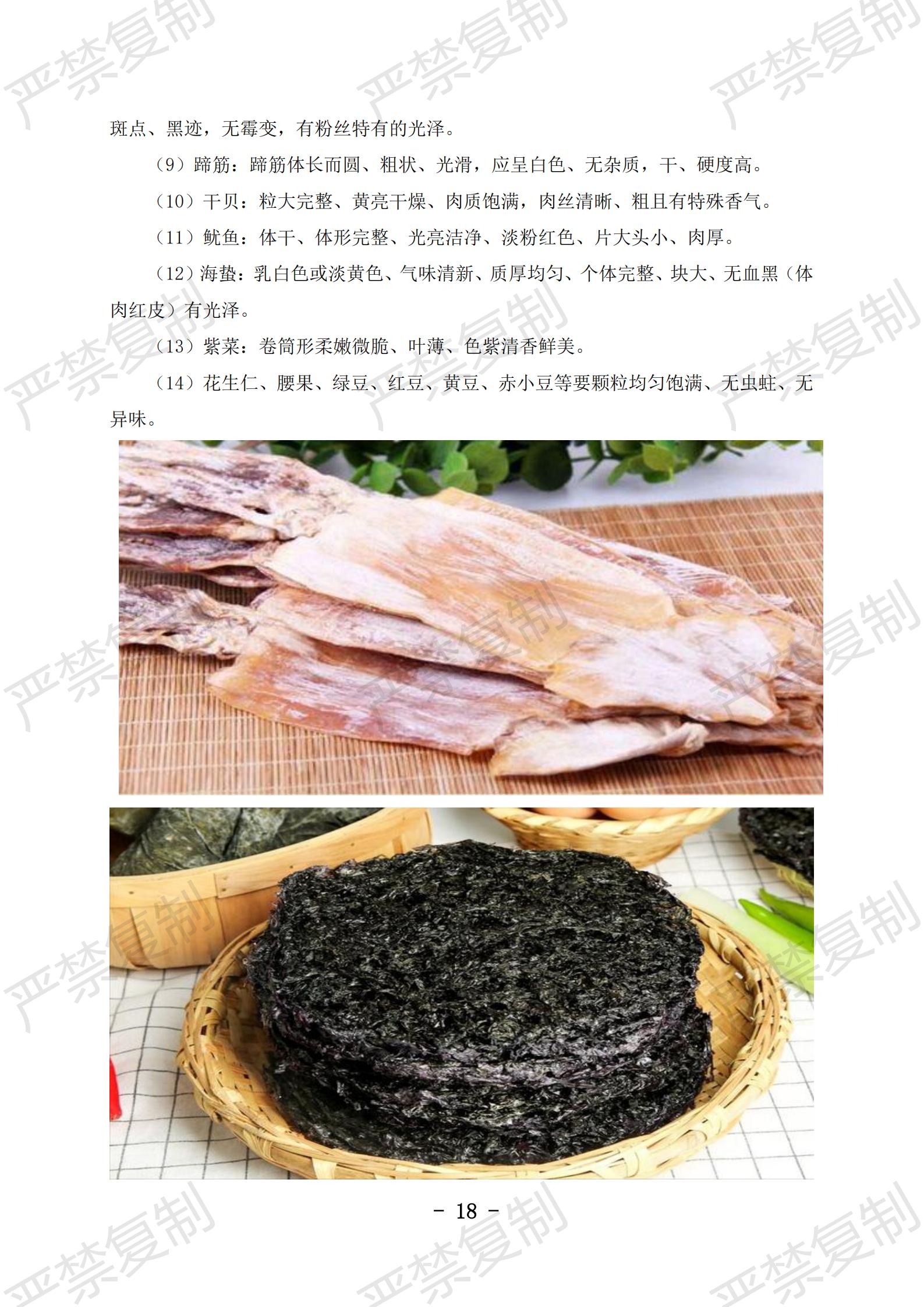 蔬果类验收标准;水果类验收标准;冷冻类验收标准;水产类验收标准;鲜肉类验收标准;蛋类验收标准;豆制品验收标准;粮油类验收标准;调料类验收标准;干货类验收标准